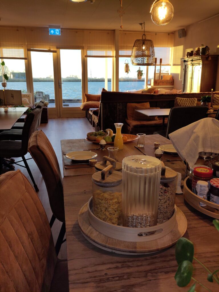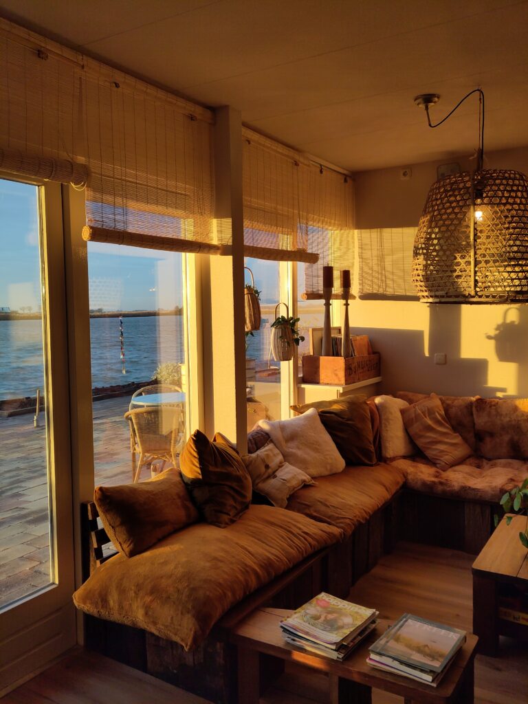 Kortom, er valt in de omgeving genoeg te doen en wil je dat niet? Dan kruip je zomers op ons heerlijke terras pal aan het water (je kunt er ook in zwemmen!) of je nestelt je behaaglijk tussen de kussens in onze loungehoek en zwijmelt weg in je boek of met jouw blik turend over het water. Hoe fijn!